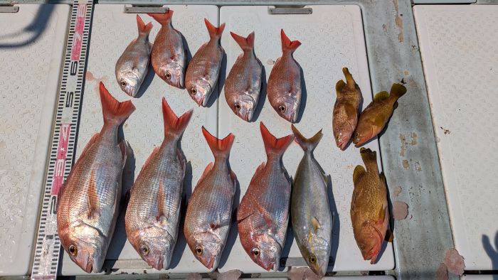 13日(月)、真鯛・青物釣り、乗り合い募集します(現在2名) 16日(木)、真鯛釣り乗り合い募集します(現在3名) 17日(金)、18日(土)、真鯛釣り、乗り合い募集します(現在1名づつ) 19日(日)、真鯛釣り募集します