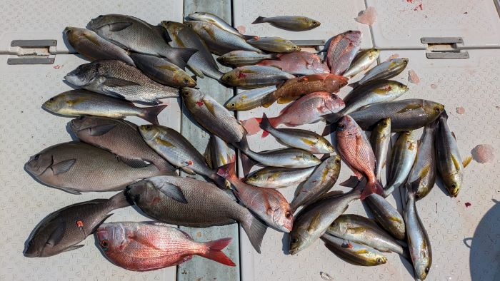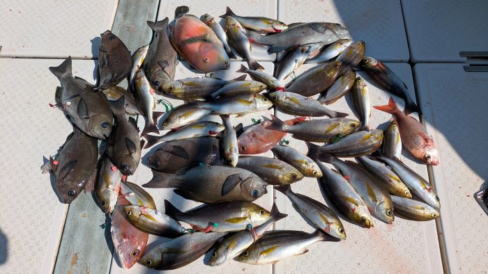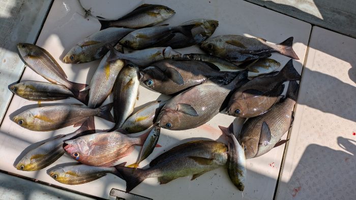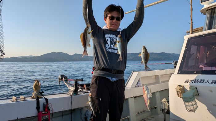 1名 (ハガツオ2本、ヤズ・ネリゴ8本、2キロ真鯛)