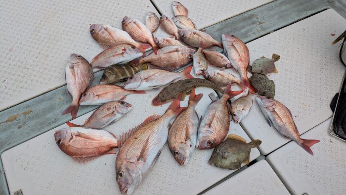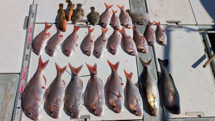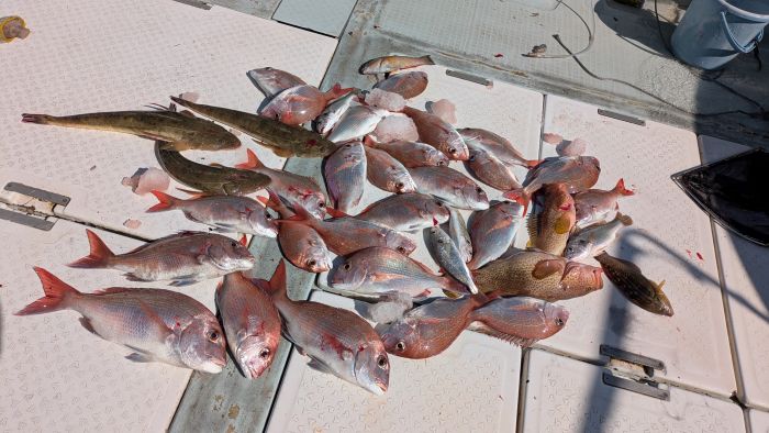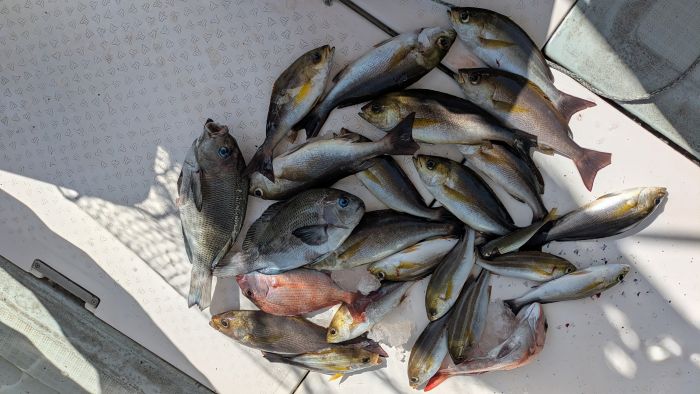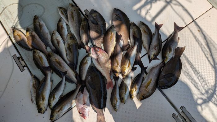 今日は、真鯛釣りで出船しました 小型は半分以上リリースされたので、数はそれほど伸びていません