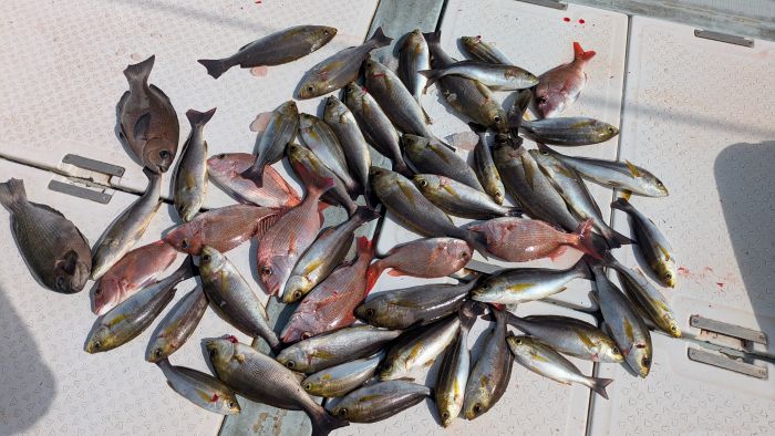 クーラーに、ヤズと小鯛6匹ほど入ってました