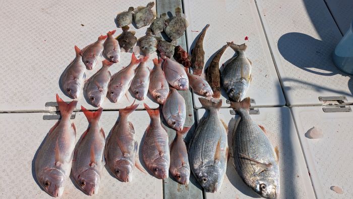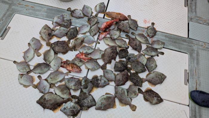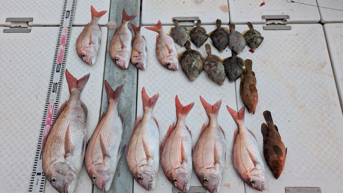 次男もカワハギ10数枚と、真鯛・ヘダイも釣りあげてました
