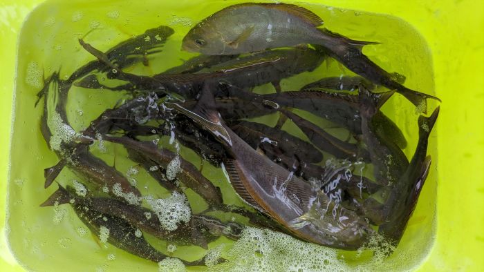 小型はほとんどリリースされたので、船長が数匹入れただけです