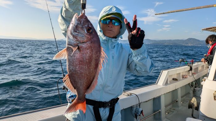 周りもほとんど見えず、午前10時前から真鯛釣りに変更しました