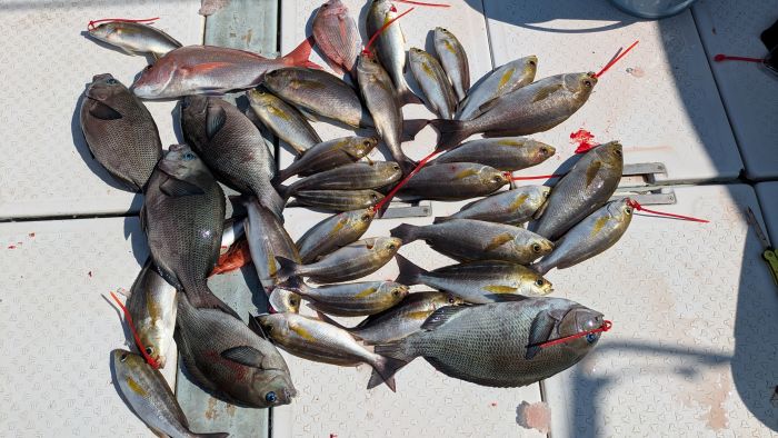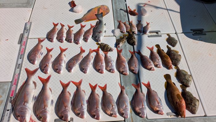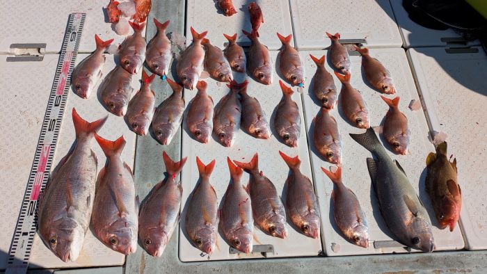 今日は、真鯛釣りで出船しました 小型は半分以上リリースされたので、数はそれほど伸びていません