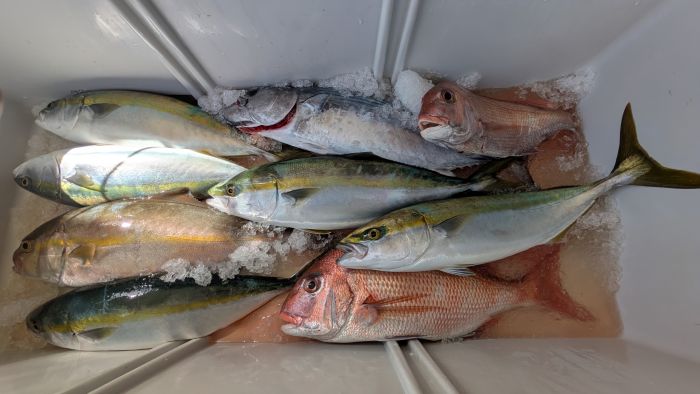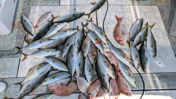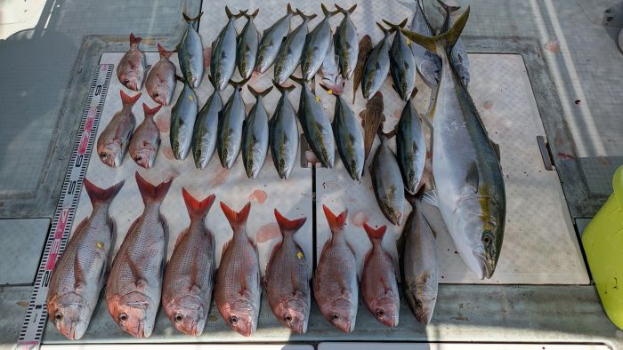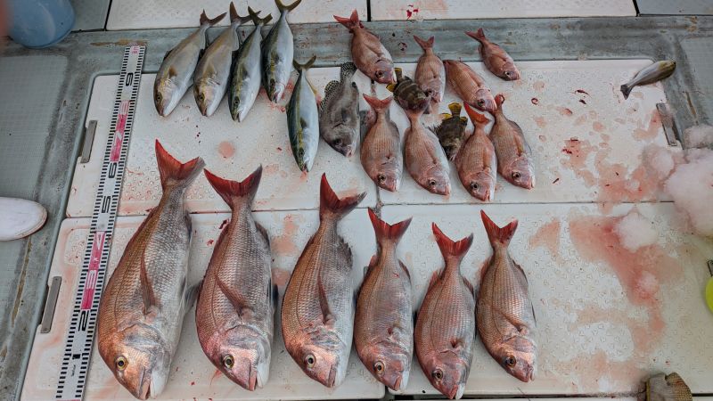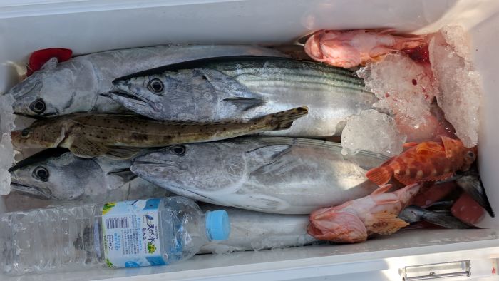 1名 (ハガツオ2本、ヤズ・ネリゴ8本、2キロ真鯛)